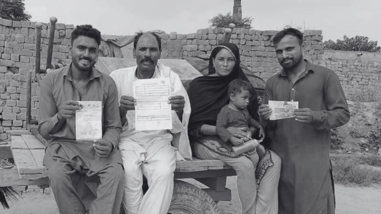Arslan, de 30 anos, e o seu pai, Nazir Masih, de 65, partilharam grande parte das suas vidas na dura realidade da escravidão por empréstimos que fizeram por necessidade. As suas jornadas eram longas e exaustivas, dedicadas à produção de tijolos, sob condições de vida extremamente precárias e sem qualquer vislumbre de liberdade. Esta situação estendia-se à sua família: a esposa de Arslan, Farah (35 anos), e o pequeno filho, Suleiman (18 meses), também suportavam as dificuldades desta existência. Infelizmente, os anos de trabalho forçado e pesado deixaram marcas profundas, e Nazir enfrenta hoje problemas de saúde pulmonar.